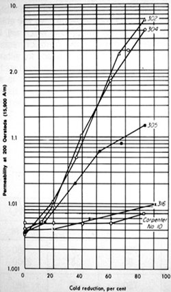 Notice the lower alloy steels yield a higher magnetism with the same amount of cold working.