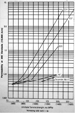 Magnetism of STEEL FASTENERS (cold worked) vs. tensile strength.